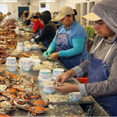 The report concludes that “despite the availability of proven ways to prevent injuries and mitigate harm to workers’ health, such as abandoning quota systems, providing protective gear, and venting crab vapors away from workers, some employers lag behind in implementing these solutions.”